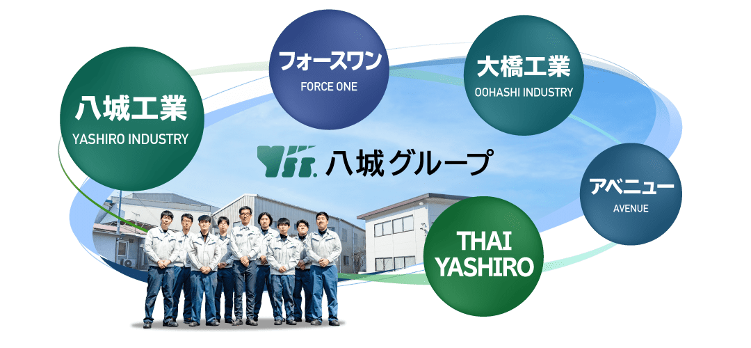 主な事業として、八城工業で建設機械のキャビンを、フォースワンで自動車・特装車のフレームを製造しています。