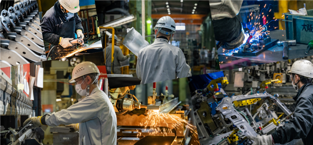 技術領域は幅広く、設計からプレス、そして組み立てまで対応し、現在は国内グループ3社、タイに1社を構えるまでに成長。歴史を積み重ねながら、新しい事業に挑戦し続けていく企業風土を大切にしています。
