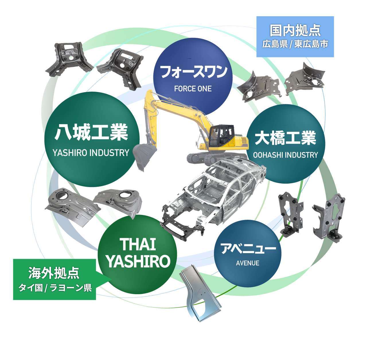 当社は、1969年に現在も本社を置く東広島市(旧賀茂郡)黒瀬町に町工場として産声を上げ、今日に至る50年以上の歴史の中で自動車部品と建設機械部品製造を中心に技術力を高め、お客様の声に応えてきました。