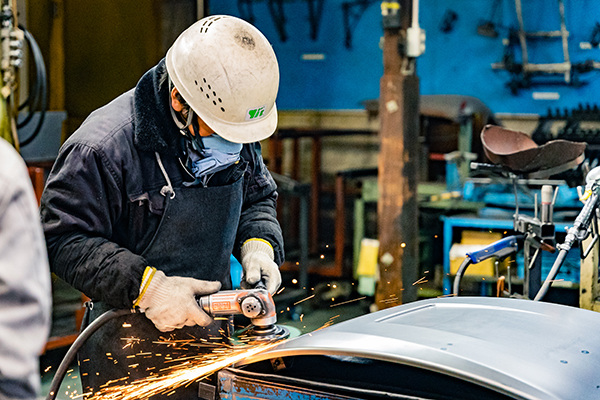 組立まで長年と経験とノウハウに裏づけされた高い技術力でより強くより軽いボディ製造を自社一貫で行います