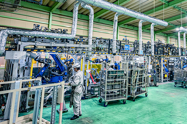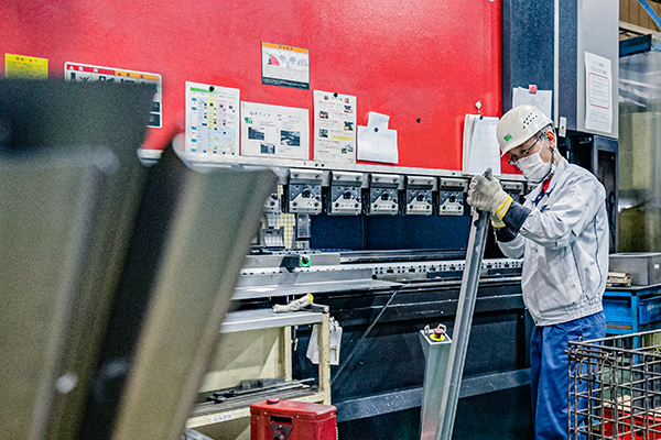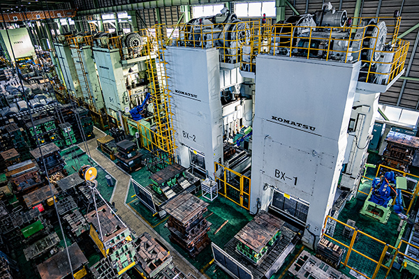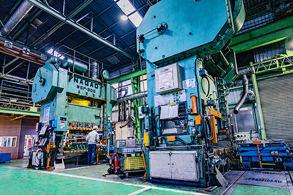 プレスと溶接を同時に行うことで工程を集約化。製造工程を工夫することで、スペースの削減や人員負担減、作業時間の短縮化につなげています。