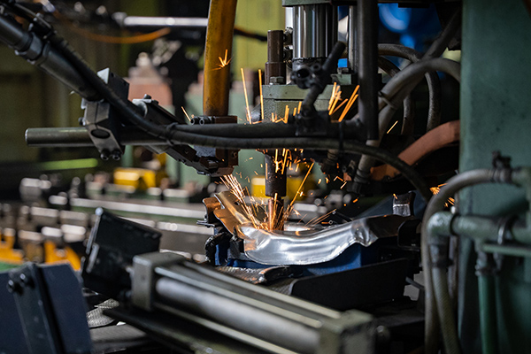 プレス工程で加工したパーツやさまざまな部品を「溶接」によってつなぎ合わせ、製品のカタチにしていきます。