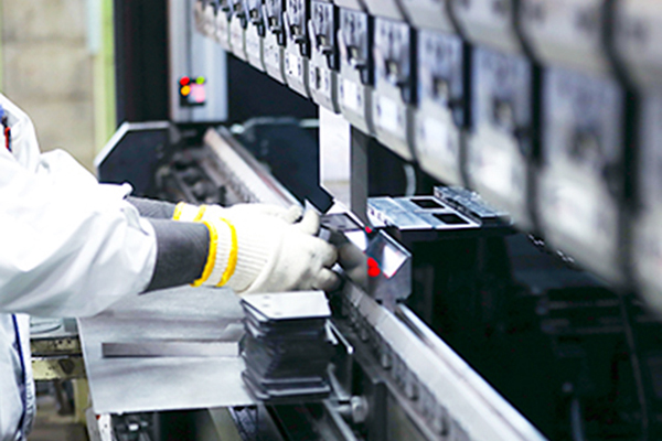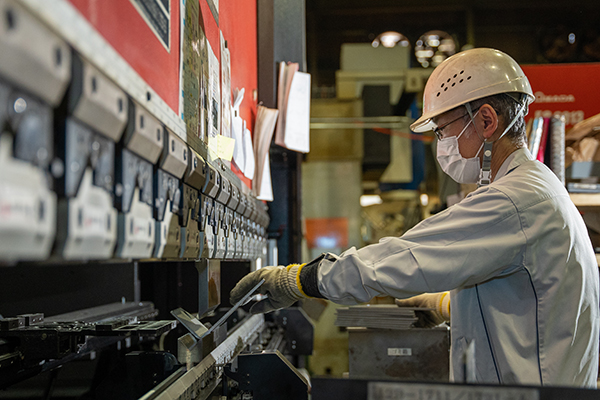 多品種少量生産に対応できるブレーキプレスにて、複雑な曲げにも対応しています。