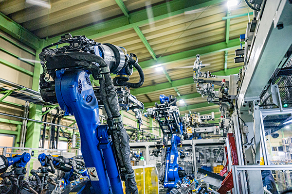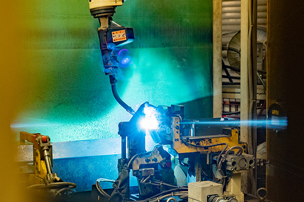アーク溶接ロボット、スポット溶接ロボット、ボルト・ナット溶接ロボットなど多様なロボットを活用して生産効率を上げています。